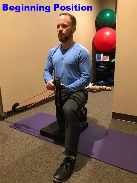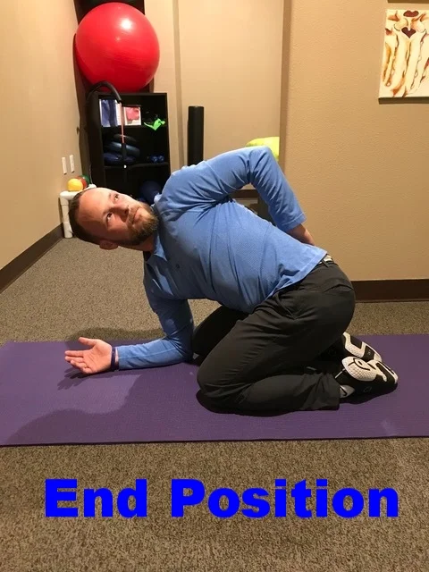 Beginning and end positions: Rotate as far as you can, and focus on opening the chest as much as possible. Work both sides for 2-3 sets of 10-15 reps.