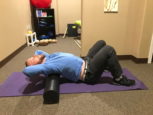 Sometimes my clients are puzzled when they tell me about pain or restricted mobility in their neck, shoulders, or low back, and I start working on the problem by assessing their upper- and mid-back (aka the thoracic spine). I begin there because restricted mobility in the thoracic spine is often the root cause. If the thoracic spine is unable to properly move through certain ranges of motion (flexion, extension , side bending, and rotation), then nearby joints are often forced to compensate. To fully assess and treat pain and stiffness in the neck, shoulders, and low back, I first ensure adequate mobility and strength in the thoracic spine. For people who do overhead weight lifting, thoracic spine problems may present as restricted and often painful neck, shoulder and low back motion. This is often the result of what is known as over-extension (aka hyper-extension), and is a compensation that the body undergoes in order to allow you to continue to perform athletically. Hyper-extension causes a joint to move beyond the motion that it was designed for. This can lead to many serious issues such as; joint hyper-mobility, early onset joint degeneration, ligament/tendon tears and arthritis. To treat a problem in the thoracic spine, I use hands-on adjusting techniques, and I teach exercises to complement and maintain the joint alignment correction that is achieved during a typical treatment in my office. Optimizing the function and stability of the joints in the body allows my patients to continue increasing strength and flexibility independently. Here are some quick ways to check your thoracic spine mobility and make improvements on your own: